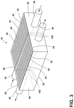 Advanced materials with superior thermal conductivity properties can significantly improve heat exchanger compactness. Materials such as aluminum alloys, copper alloys, and composite materials allow for thinner walls and more efficient heat transfer, reducing the overall size requirements. Additionally, these materials often offer benefits such as corrosion resistance and reduced weight, further enhancing the performance of compact heat exchangers.Expand Specific Solutions04 Optimized flow arrangements and configurations