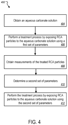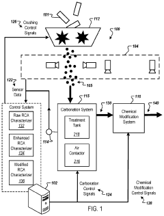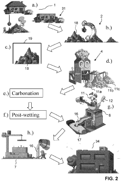 Accelerated carbonation processes that promote the absorption of atmospheric CO2 by concrete during its lifecycle. These techniques involve controlling curing conditions, introducing catalysts, or modifying concrete porosity to optimize carbon uptake. Some methods include exposing fresh concrete to CO2-rich environments or injecting CO2 during mixing. These approaches enhance the natural carbonation process that occurs in concrete, increasing the amount of carbon sequestered over time.Expand Specific Solutions05 Waste incorporation in concrete beyond recycled aggregates