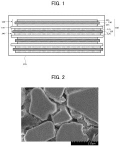 Strengths: Exceptional long-term stability and calendar life, critical for commercial applications. Their integrated approach to material and cell design has yielded systems with balanced performance metrics. Weaknesses: Moderate specific capacity compared to some competitors, limiting maximum achievable energy density. Their cathode materials require high-purity natural graphite as starting material, potentially creating supply chain dependencies.