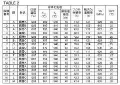 Technical Solution: POSCO has developed advanced duplex stainless steel grades including POSASD™ (POSCO Advanced Super Duplex) that demonstrate significantly higher pitting resistance than 316L, with PREN values exceeding 40 compared to 316L's 24-26. Their proprietary processing techniques create a precisely balanced microstructure of approximately 50% ferrite and 50% austenite, yielding yield strengths of 450-550 MPa versus 316L's typical 220-240 MPa. POSCO's research has shown their duplex grades maintain mechanical properties at elevated temperatures up to 280°C, whereas 316L experiences strength reduction above 260°C. For weldability, POSCO employs controlled cooling rates and specialized heat treatment protocols to prevent detrimental intermetallic phase formation in the heat-affected zone. Their duplex grades demonstrate superior resistance to chloride stress corrosion cracking, with testing showing no failures after 1000 hours in boiling 42% MgCl₂ solution, while 316L typically fails within 10-20 hours under identical conditions.