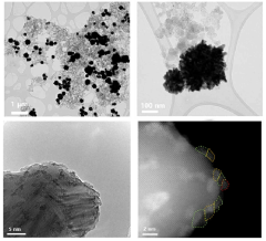 Maintaining catalyst stability during long-term CO2 electroreduction remains a significant challenge. Common degradation mechanisms include metal leaching, surface poisoning by reaction intermediates, structural collapse, and agglomeration of nanoparticles. Strategies to enhance stability include encapsulation of active sites, core-shell structures, surface passivation layers, and the development of self-healing catalysts. Understanding the relationship between catalyst structure and stability is essential for designing durable electrodes for practical applications. In-situ and operando characterization techniques provide valuable insights into degradation processes under reaction conditions.Expand Specific Solutions