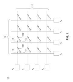 Recent patent trends indicate increasing focus on memristive materials, particularly metal oxides and phase-change materials, which demonstrate superior switching characteristics and compatibility with existing manufacturing processes. However, these materials still face significant challenges in reliability and endurance under repeated switching operations.