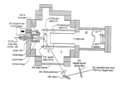 Matrix-Assisted Laser Desorption/Ionization Time-of-Flight (MALDI-TOF) mass spectrometry can be used for depth analysis by controlling the laser penetration or through layer-by-layer removal of material. This technique is particularly valuable for analyzing biological tissues, polymers, and thin films. By adjusting laser parameters or using specialized sample preparation methods, researchers can obtain depth-resolved molecular information. Recent advancements include 3D MALDI imaging, which combines lateral and depth information for comprehensive sample characterization.Expand Specific Solutions03 Combined Raman and MALDI-TOF analysis systems
