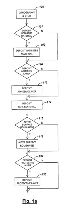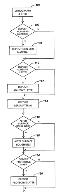 Various fabrication techniques are employed to create effective SERS substrates, including lithography, chemical vapor deposition, electrochemical deposition, and self-assembly methods. These techniques allow precise control over substrate morphology, nanostructure spacing, and surface roughness, which are critical factors affecting SERS enhancement. Advanced manufacturing approaches enable the production of reproducible substrates with consistent enhancement factors and improved detection limits.Expand Specific Solutions04 SERS detection systems and instrumentation