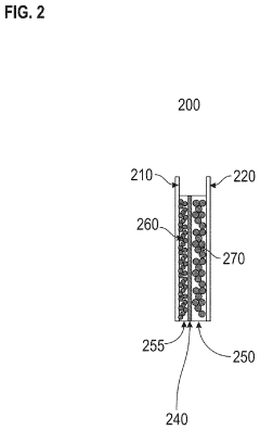Interface engineering focuses on improving the contact and interaction between sulfur cathodes and polymer electrolytes. This can involve surface modifications of the cathode materials, incorporation of functional groups, or addition of interlayers. These approaches aim to enhance ion transport, reduce interfacial resistance, and prevent polysulfide dissolution into the electrolyte. Proper interface engineering can significantly improve the cycle life, capacity retention, and rate capability of sulfur-based batteries with polymer electrolytes.Expand Specific Solutions04 Additives and modifiers for polymer electrolytes in sulfur batteries