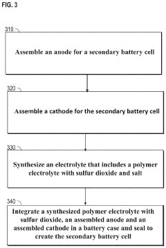 The chemical compatibility between sulfur cathodes and polymer electrolytes presents further challenges. Many polymer electrolytes are susceptible to degradation when exposed to the highly reactive polysulfide species, leading to deterioration of the electrolyte properties over time. This degradation pathway accelerates capacity fade and shortens battery lifespan.