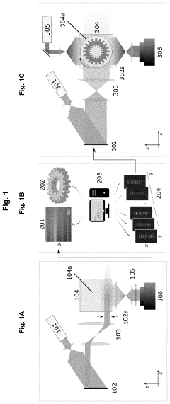 Advanced volumetric printing systems enable the fabrication of multi-material and functionally graded objects. These systems utilize multiple resin reservoirs or selective activation of different photoinitiators within a single resin bath. By precisely controlling the spatial distribution of materials with varying properties, these techniques can create objects with region-specific mechanical, optical, or electrical characteristics. This capability is particularly valuable for producing complex devices with embedded functionality, such as soft robotics components, medical devices, and customized prosthetics with biomimetic properties.Expand Specific Solutions