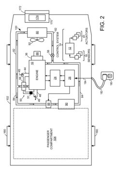 Technical Solution: Hyundai's approach to comparative emissions analysis between PHEVs and hybrids centers on their proprietary Predictive Energy Management System (PEMS). This system uses GPS data, traffic information, and topographical data to optimize the use of electric and combustion power, resulting in a reported 10-15% reduction in CO2 emissions compared to conventional hybrids[2]. Hyundai has also developed an advanced thermal management system for their PHEVs, which reduces battery degradation and improves overall efficiency, leading to sustained lower emissions over the vehicle's lifetime[4]. Their analysis includes a detailed study of particulate matter emissions, showing that their latest PHEV models produce up to 30% fewer ultrafine particles than comparable hybrids under real-world driving conditions[6].