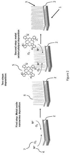 The electrochemical properties of catalysts determine their effectiveness in CO2 reduction. Key properties include conductivity, electron transfer capability, overpotential requirements, and faradaic efficiency. Understanding reaction mechanisms, including proton-coupled electron transfer processes and intermediate formation, is crucial for catalyst design. Electrochemical characterization techniques such as cyclic voltammetry, impedance spectroscopy, and chronoamperometry are used to evaluate catalyst performance and elucidate reaction pathways.Expand Specific Solutions04 Nanostructured catalysts and surface engineering
