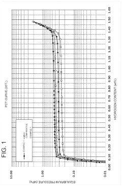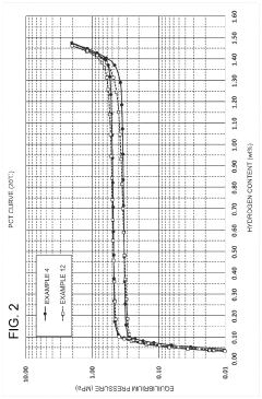 - Electrochemical properties of hydrogen storage alloys: Hydrogen storage alloys exhibit specific electrochemical properties that make them suitable for use in rechargeable batteries and fuel cells. These properties include charge/discharge characteristics, cycle stability, and electrochemical capacity. The electrochemical performance of these materials is influenced by their composition, microstructure, and surface properties. Research focuses on improving the electrochemical kinetics and stability of hydrogen storage materials for energy storage applications.