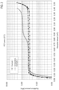 Technical Solution: H2Go Power has developed proprietary nanoporous materials for solid-state hydrogen storage that combine high surface area adsorbents with catalytically active sites. Their technology utilizes advanced metal-organic frameworks (MOFs) and covalent organic frameworks (COFs) with tailored pore structures achieving volumetric densities exceeding 40 g/L at ambient temperatures[5]. H2Go's materials feature thermally responsive binding sites that adjust hydrogen affinity based on temperature fluctuations, enabling efficient storage and release cycles without external heating systems. Their nano-engineered composites incorporate palladium nanoparticles that catalyze hydrogen dissociation at interfaces, reducing energy barriers for absorption and desorption processes. H2Go has demonstrated integrated systems that maintain stable hydrogen delivery rates under variable demand conditions, critical for portable and stationary applications. Their materials show exceptional stability with less than 5% capacity loss after 500 cycles under realistic operating conditions[6].