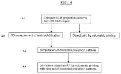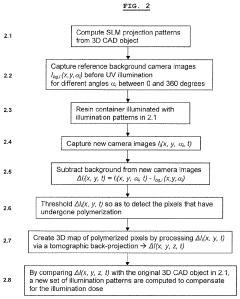 - A method involving real-time monitoring and feedback-enhanced tomographic reconstruction, where a 3D object being formed is imaged using an imaging system, and based on the images, new light patterns are generated to correct the photopolymerization process, allowing for higher resolution printing by adjusting the light dose distribution and stopping the process when complete.