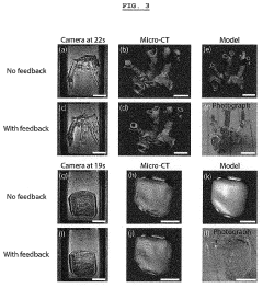 After volumetric 3D printing, various post-processing techniques are applied to enhance the optical quality of printed components. These include thermal curing to complete polymerization, surface polishing to reduce roughness, coating applications to improve durability or add functionality, and precision machining for critical dimensions. Advanced post-processing methods can significantly improve optical performance by reducing scattering, enhancing transparency, and ensuring dimensional accuracy of the printed optical elements.Expand Specific Solutions05 Integration of 3D printed optics in complex systems
