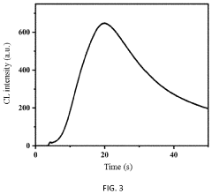 - A flash-type CL liquid composition utilizing CuInS2/ZnS nanomaterials excited by Tris-N2H4.H2O—H2O2, which simplifies synthesis, enhances CL intensity, and provides photostability, with CL times ranging from 1-10 seconds and emission in the near-infrared region.