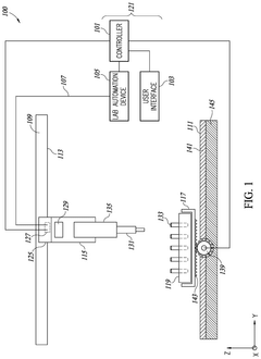 Integration of artificial intelligence and machine learning algorithms enhances autonomous lab systems by enabling real-time data analysis, pattern recognition, and predictive modeling. These technologies improve experimental design, optimize parameters, and facilitate adaptive decision-making during experiments. AI-powered systems can identify anomalies, suggest corrections, and continuously learn from previous runs, leading to improved accuracy and reproducibility of results while reducing the need for human intervention.Expand Specific Solutions03 Precision instrumentation and calibration systems