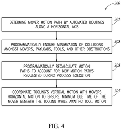 - A flexible parallelized laboratory automation system with programmable movers and tools that allow independent operation on multiple axes, enabled by a parallel control system, allowing users to define actions and sequences dynamically, minimizing collisions and optimizing motion paths for efficient labware movement.