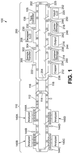 Technical Solution: Beckman Coulter's DxA 5000 Fit represents their advanced autonomous laboratory solution, designed to automate up to 80% of manual steps in traditional laboratory testing. The system employs intelligent sample routing with predictive algorithms that optimize testing pathways based on real-time workload conditions. Their proprietary Dynamic Flow Management technology continuously monitors system status, automatically prioritizing STAT samples while maintaining efficient processing of routine tests. The autonomous system incorporates vision-guided robotics for precise sample handling, reducing manual touch points and associated errors by approximately 75%. Beckman's solution features intelligent error recovery capabilities that can automatically detect and resolve common issues without human intervention, maintaining operational continuity. The system's middleware integrates with laboratory information systems to provide comprehensive analytics on operational efficiency, test turnaround times, and resource utilization, enabling data-driven laboratory management decisions.