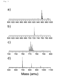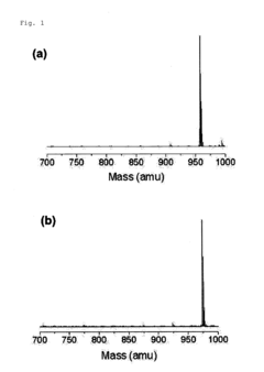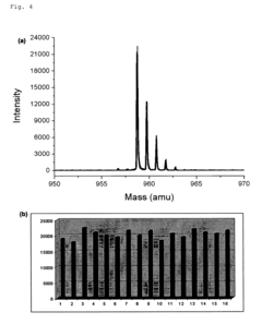 The combination of GPC and MALDI-TOF MS enables comprehensive characterization of nanomaterials and nanocomposites. GPC separates nanoparticles based on hydrodynamic volume, while MALDI-TOF MS provides detailed information about their chemical composition and surface modifications. These techniques are particularly valuable for analyzing functionalized nanoparticles, quantum dots, and polymer-based nanocomposites, offering insights into size distribution, molecular weight, and chemical structure.Expand Specific Solutions04 Pharmaceutical compound analysis and drug development
