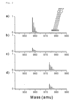 - A method involving the use of a cationic solution to cause laser desorption/ionization of self-assembled monolayers without a matrix, allowing for uniform detection and enabling quantitative and qualitative analysis with high reproducibility and two-dimensional chemical mapping.
