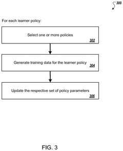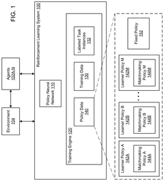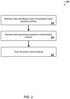 - The method involves maintaining a pool of candidate action selection policies with different matchmaking policies, reinforcement learning loss functions, and hyperparameters to encourage diversity and collective learning among learner policies, allowing them to explore and improve together through cooperative or competitive interactions.