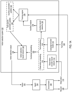- A system that combines a language encoder model, an observation encoder neural network, and an action selection neural network to generate combined embeddings for action selection, using reinforcement learning and auxiliary updates to optimize task-specific and auxiliary objectives, allowing the system to learn relationships between text and environmental observations.