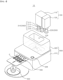 Technical Solution: Canon U.S. Life Sciences has leveraged its expertise in precision engineering and microfluidics to develop advanced chip platforms applicable to cosmetic testing. Their "BioAnalyzer" microfluidic system utilizes high-precision inkjet technology to create exceptionally uniform droplet-based testing environments, enabling quantitative analysis of cosmetic ingredient interactions with biological samples. The company's chips feature integrated optical detection systems that provide real-time monitoring of cellular responses to cosmetic compounds, including changes in morphology, viability, and functional markers. Canon's microfluidic technology incorporates proprietary surface treatments that prevent non-specific binding of test substances, enhancing measurement accuracy and reproducibility. Their systems employ parallel processing capabilities that allow simultaneous testing of multiple formulations under identical conditions, significantly increasing throughput compared to traditional methods. The company has also developed specialized microfluidic chips that simulate specific skin conditions, such as sensitive skin or photoaged skin, providing targeted testing platforms for specialized cosmetic products. Canon's microfluidic solutions integrate seamlessly with their advanced imaging systems, creating comprehensive analytical platforms for cosmetic research and development.