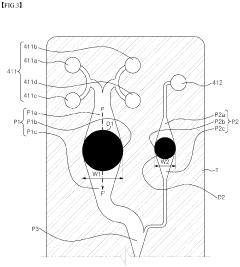 Microfluidic chips have extensive applications in biological and medical analysis, including DNA sequencing, protein analysis, cell sorting, and diagnostic testing. These chips enable the manipulation of small sample volumes, reducing reagent consumption and analysis time. The controlled microenvironment within the chips allows for precise cell culture conditions, single-cell analysis, and high-throughput screening of drugs or biomarkers. Microfluidic technology has revolutionized point-of-care diagnostics by providing rapid, portable, and sensitive analytical platforms.Expand Specific Solutions04 Flow control and manipulation mechanisms