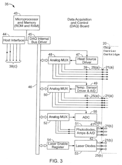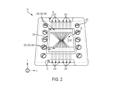 Technical Solution: IBM has pioneered advanced nanofluidic control systems leveraging their semiconductor manufacturing expertise. Their technology utilizes nanochannels with dimensions comparable to the size of biomolecules (10-100nm), enabling precise manipulation of individual molecules. IBM's nanofluidic platforms incorporate electronic field control for electrophoretic separation and concentration of biomolecules with unprecedented resolution. The company has developed silicon-based nanofluidic chips with integrated sensors that can detect and analyze single molecules as they pass through nanochannels. Their approach combines nanolithography techniques with surface chemistry modifications to create functional nanofluidic devices with controlled surface properties. IBM has demonstrated DNA sequencing applications where DNA molecules are threaded through nanopores while measuring electrical signals to identify nucleotide sequences[2][3]. Their systems also incorporate machine learning algorithms to interpret complex signals from nanofluidic sensors.