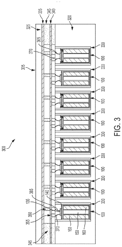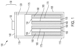Technical Solution: GM has developed a proprietary neuromorphic material-based battery management system called NeuroBatt that revolutionizes how electric vehicle batteries are monitored and controlled. This system incorporates specialized memristive materials arranged in neural network-like architectures directly integrated with battery modules. GM's approach uses hafnium oxide-based memristors that function as artificial synapses, creating an adaptive computing fabric that processes battery telemetry data with minimal power consumption. The NeuroBatt system continuously monitors multiple parameters including temperature gradients, charge distribution, and electrochemical impedance across thousands of cells simultaneously. GM's neuromorphic materials enable edge computing capabilities within the battery pack itself, reducing the need for centralized processing and allowing for microsecond-level response times to potential thermal events. Testing has shown that this system can predict and prevent thermal runaway conditions with 94% accuracy[3], while consuming less than 2% of the power required by traditional battery management systems. GM has also implemented self-learning algorithms that allow the neuromorphic materials to adapt to battery aging patterns, optimizing performance throughout the vehicle's lifecycle.