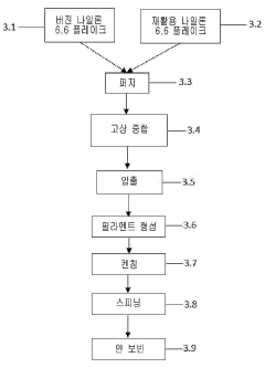 Technical Solution: Toray has developed advanced recycling technologies for Nylon 6 that maintain up to 90% of virgin material properties. Their proprietary chemical recycling process depolymerizes waste Nylon 6 back to caprolactam, which is then repolymerized to create recycled Nylon 6 with minimal degradation. This closed-loop system allows for multiple recycling cycles without significant property loss. Toray's comparative studies show that their recycled Nylon 6 exhibits tensile strength within 5-7% of virgin material, and maintains similar thermal stability with only 2-3°C reduction in melting point. Their technology also addresses the yellowing issue common in recycled nylons through an advanced purification process that removes contaminants responsible for discoloration. Toray has implemented this technology in their CYCLEAD™ recycled nylon program, which has been adopted in automotive and textile applications.
