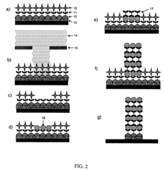 Self-assembled monolayers can be fabricated through various techniques including vapor deposition, solution-based methods, and microcontact printing. The formation process typically involves the spontaneous organization of molecules on a substrate surface through chemisorption, followed by a slow reorganization to form ordered structures. These methods allow for precise control over the molecular architecture and surface properties of the resulting monolayers.- Fabrication methods for SAMs: Various techniques are employed to create Self-Assembled Monolayers on different substrates. These methods include vapor deposition, solution-based assembly, microcontact printing, and lithographic patterning. The fabrication process typically involves the spontaneous organization of molecules on surfaces through chemisorption, resulting in well-ordered molecular structures with specific functional properties. These techniques allow precise control over surface properties at the molecular level.