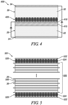 Technical Solution: Panasonic has developed an innovative "Thermo-Catalytic Interface" (TCI) coating system specifically engineered for lithium-ion battery thermal management. Their approach combines traditional thermal interface materials with catalytically active components that facilitate controlled heat dissipation. The TCI coating consists of a base layer of modified aluminum oxide doped with platinum and palladium catalysts, covered by a thermally conductive silicone polymer containing graphene nanoparticles. This dual-function coating not only transfers heat efficiently to cooling systems but also catalyzes the breakdown of any electrolyte gases that might be generated during thermal events, providing an additional safety mechanism. Panasonic's coating is applied through a proprietary screen printing process that ensures uniform thickness (15-30 microns) and complete coverage of critical thermal interfaces. The company has integrated this technology into their latest generation of EV battery packs, demonstrating temperature reductions of up to 15°C during fast charging operations.
