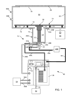 Technical Solution: Air Liquide has developed advanced cryogenic temperature management systems that precisely control both liquid nitrogen (-196°C) and liquid oxygen (-183°C) environments. Their proprietary ASU (Air Separation Unit) technology employs multi-column distillation processes that achieve separation efficiencies exceeding 99.5% purity for both gases. Their cryogenic expertise extends to specialized storage solutions with vacuum-insulated vessels featuring multi-layer insulation that reduces heat leak to <0.4% per day for LN2 and <0.5% for LOX. Air Liquide's temperature monitoring systems maintain ±0.5°C precision across both cryogenic mediums, with proprietary algorithms compensating for the different thermal conductivity properties (LN2: 0.1259 W/m·K; LOX: 0.152 W/m·K).