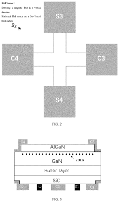 Advanced manufacturing techniques enable the integration of Hall effect sensors with other electronic components and their miniaturization. This includes embedding sensors in integrated circuits, using MEMS technology, and developing compact packaging solutions. These advancements reduce the overall size of sensing systems while maintaining or improving performance characteristics, allowing for implementation in space-constrained applications and enabling new use cases in portable and wearable devices.Expand Specific Solutions04 Power efficiency and consumption optimization