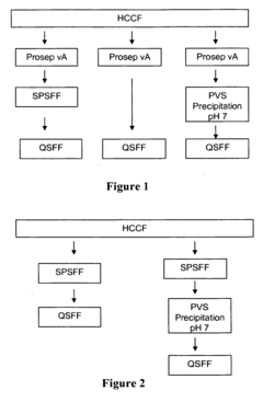 - Chromatography methods for protein purification: Various chromatography techniques are employed for protein purification, including ion exchange, affinity, size exclusion, and hydrophobic interaction chromatography. These methods separate proteins based on different physical or chemical properties such as charge, binding affinity, size, or hydrophobicity. Chromatography can be used in multiple stages to progressively increase protein purity. Advanced chromatographic techniques allow for the separation of proteins with similar properties, contributing to higher purity levels in the final product.