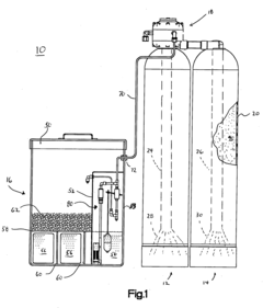 Technical Solution: Culligan has engineered a comprehensive lithium chloride water softening solution that integrates seamlessly with their existing HE (High Efficiency) softener platform. Their approach utilizes a patented proportional brining system that precisely calibrates lithium chloride concentration based on water hardness and flow rates. The technology employs specialized ion-selective membranes that enhance the efficiency of lithium ion exchange while minimizing lithium loss during regeneration cycles. Culligan's system features a dual-tank configuration that ensures continuous soft water availability while optimizing lithium chloride usage through a counter-current regeneration process. Their Smart Technology monitoring system provides real-time analysis of system performance, water quality parameters, and regenerant consumption, enabling predictive maintenance and remote diagnostics. Laboratory testing has demonstrated that Culligan's lithium chloride treatment achieves comparable hardness removal to sodium-based systems while using approximately 25% less regenerant by volume.