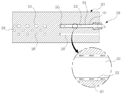 Technical Solution: SABIC has developed an integrated approach to microinjection molding for thermal management that combines specialized materials with process optimization. Their LNP™ THERMOCOMP™ compound portfolio includes thermally conductive materials specifically engineered for microinjection molding, achieving thermal conductivity values up to 25 W/mK while maintaining flow properties suitable for microfeatures with wall thicknesses down to 0.1mm. SABIC's process technology utilizes a specialized screw design with a 24:1 L/D ratio and graduated compression zones that maintain consistent material temperature and prevent thermal degradation of conductive fillers. Their mold technology incorporates conformal cooling channels manufactured through direct metal laser sintering, creating optimized thermal management within the mold itself to ensure dimensional stability of microfeatures. SABIC has pioneered the development of hybrid molding techniques that combine thermally conductive polymers with metal inserts in a single process, creating integrated thermal pathways that reduce thermal resistance by up to 60% compared to assembled components[6]. Their proprietary surface modification technology enhances the wettability of molded microchannels, improving heat transfer efficiency in liquid cooling applications by up to 40%. SABIC's Digital Composites Manufacturing approach enables the precise orientation of thermally conductive fillers during the injection process, creating anisotropic thermal conductivity that can be tailored to specific heat flow requirements.