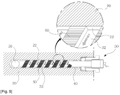 Specialized cooling techniques have been developed specifically for micro-scale features in injection molded parts. These include micro-channel cooling systems, pulsed cooling methods, and the use of thermally conductive materials in strategic locations. Rapid thermal cycling, where mold temperature is quickly alternated between hot and cold states, allows for better replication of micro-features while maintaining reasonable cycle times.Expand Specific Solutions05 Material considerations for thermal management