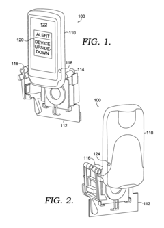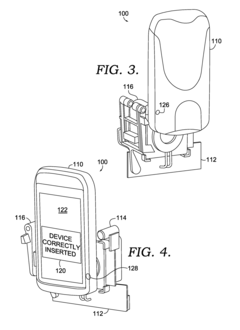 - The use of Hall effect sensors, which respond to magnetic fields, is employed to detect the correct orientation and full insertion of portable devices into bases by generating voltage signals based on the proximity of magnets, allowing for contact-less detection and alerting mechanisms to ensure proper alignment and coupling.