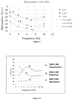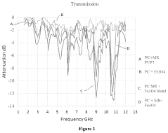 Technical Solution: Nanotech Energy has developed revolutionary graphene-based EMI shielding materials that demonstrate superior performance across an exceptionally wide frequency range (100 MHz to 40 GHz). Their patented graphene-polymer composites achieve shielding effectiveness of 45-70 dB while maintaining flexibility and low weight. The company's proprietary manufacturing process creates highly conductive, defect-free graphene sheets that can be functionalized with various additives to enhance performance in specific frequency bands. For lower frequencies (100-500 MHz), Nanotech incorporates magnetic nanoparticles into their graphene matrix, creating hybrid materials that address both electric and magnetic components of EMI. Their comparative testing has demonstrated that these graphene-based solutions outperform traditional metal shields by 15-30% in the 5-40 GHz range while being 70% lighter. Nanotech's latest innovation combines graphene with MXene materials to create ultra-thin (< 100 μm) shields with exceptional performance in the millimeter wave frequencies (30-40 GHz) increasingly used in 5G communications and automotive radar systems.