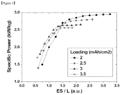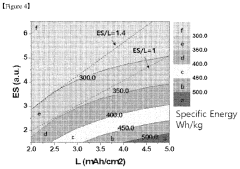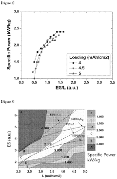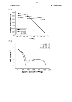 Technical Solution: Samsung SDI has developed comprehensive comparative frameworks for lithium-sulfur and lithium-ion technologies. Their research demonstrates lithium-sulfur cells achieving practical energy densities of 400-600 Wh/kg compared to their latest lithium-ion cells at 250-280 Wh/kg. Samsung's approach to lithium-sulfur batteries incorporates carbon-sulfur composites with specialized porous structures that accommodate sulfur volumetric expansion during cycling. Their proprietary electrolyte additives have shown to reduce polysulfide shuttling by forming stable interfaces between electrodes and electrolyte. Samsung has conducted extensive life cycle analysis showing lithium-sulfur batteries have approximately 25% lower carbon footprint during production compared to equivalent lithium-ion cells, primarily due to reduced transition metal requirements.