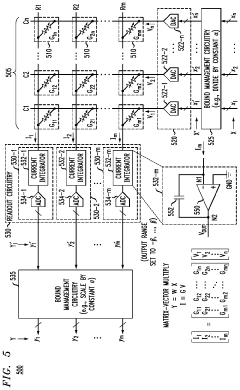 Technical Solution: Samsung has made significant advancements in comparing and optimizing material parameters for neuromorphic and analog computing systems. Their research focuses on utilizing their expertise in memory technologies, particularly MRAM (Magnetoresistive Random Access Memory) and PRAM (Phase-change Random Access Memory), to develop efficient neuromorphic computing architectures. Samsung's approach involves engineering materials with precise magnetic or phase-change properties that can represent synaptic weights in neural networks. Their comparative studies show that their STT-MRAM (Spin-Transfer Torque MRAM) materials achieve switching energies as low as 100 fJ per operation, significantly lower than conventional CMOS implementations. Samsung has also developed specialized oxide-based materials for resistive RAM (ReRAM) that demonstrate excellent analog switching characteristics, with over 64 distinguishable resistance states in a single cell, enabling efficient implementation of artificial neural networks. Their research indicates that these materials can achieve linear and symmetric weight updates, which are crucial for training neural networks directly on neuromorphic hardware[4][5]. Samsung has integrated these materials into their neuromorphic processing units, demonstrating energy efficiencies of less than 10 pJ per synaptic operation.