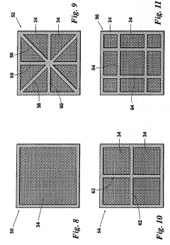 - 05 Application-specific property optimizationMetal foams can be specifically engineered to optimize properties for targeted applications. For thermal management applications, foams can be designed with open-cell structures to maximize fluid flow and heat exchange. For structural applications requiring specific mechanical responses, closed-cell foams with controlled density gradients can be developed. The ability to create functionally graded metal foams allows for components with varying properties throughout their structure, addressing multiple performance requirements simultaneously. This customization extends to properties such as vibration damping, acoustic absorption, and electromagnetic shielding, in addition to the primary thermal and mechanical characteristics.Expand Specific Solutions
