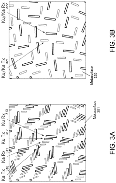 Technical Solution: Huawei has developed advanced metasurface antenna technology for 5G and beyond communications, focusing on Reconfigurable Intelligent Surface (RIS) implementations. Their approach uses programmable metasurfaces with integrated control circuits that can dynamically manipulate electromagnetic waves through phase shifting, amplitude control, and polarization adjustment. These metasurfaces function as intelligent reflectors or transmitters that can overcome non-line-of-sight limitations in millimeter-wave communications[2][4]. Huawei's implementation includes thousands of sub-wavelength unit cells with embedded PIN diodes or varactors that enable real-time reconfiguration based on channel conditions. Their systems demonstrate up to 30% coverage enhancement in urban environments compared to traditional antenna arrays, while requiring significantly less power than active beamforming solutions. Recent developments include AI-controlled metasurfaces that adaptively optimize wireless environments.