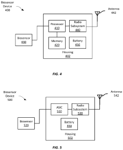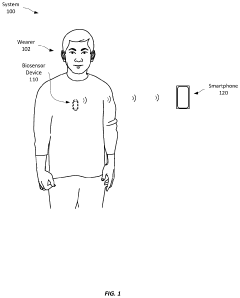 User-centric performance metrics evaluate the wearability, comfort, and overall user experience of biosensors. These include metrics for device weight, size, flexibility, skin irritation levels, and ease of use. User compliance rates and long-term adherence to wearing the devices are important indicators of successful design. Ergonomic considerations and adaptability to different body types and activities significantly impact user acceptance and the quality of data collected during real-world use.Expand Specific Solutions05 Connectivity and interoperability standards