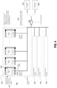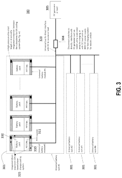 Technical Solution: Toyota has developed an innovative proton battery technology specifically optimized for automotive applications with adaptations for stationary use cases. Their mobile proton battery system integrates with Toyota's hydrogen fuel cell expertise, utilizing a reversible proton storage mechanism that can function both as an energy storage device and as a hydrogen generator. The automotive version achieves energy densities of 280-320 Wh/kg with power densities suitable for electric vehicle acceleration requirements (>1000 W/kg). Toyota's system incorporates carbon-based electrodes with platinum-group metal catalysts that have been reduced by over 70% compared to conventional fuel cells, significantly lowering costs. For stationary applications, Toyota has scaled up this technology into modular units that can be configured from 50kWh to multi-MWh installations, with an emphasis on long-duration storage (10+ hours at rated power) and integration with renewable energy sources.