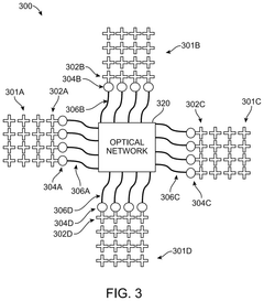 Optical interconnect technologies enable high-bandwidth, low-latency data transmission using light signals instead of electrical signals. These systems incorporate silicon photonics, vertical-cavity surface-emitting lasers (VCSELs), and optical waveguides to transmit data at high speeds with minimal energy consumption. Advanced designs include wavelength division multiplexing to increase bandwidth and optical switching for dynamic routing. These technologies are essential for high-performance computing systems and data centers where traditional electrical interconnects face bandwidth and power limitations.Expand Specific Solutions05 Integrated photonic-electronic systems