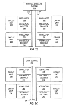 Integrated photonic-electronic systems combine the advantages of electronic circuits with photonic components on a single platform. These systems feature co-packaged optics, where optical transceivers are placed in close proximity to electronic processors to reduce latency and power consumption. The integration includes optical modulators, photodetectors, and electronic driver circuits that work together to convert between electrical and optical signals efficiently. Advanced packaging techniques such as 3D integration and silicon interposers enable higher density integration of photonic and electronic components.Expand Specific Solutions