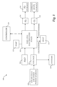 Thermal cycling management is essential for enhancing the durability and lifespan of SOECs. Controlled heating and cooling rates during startup and shutdown prevent thermal shock and mechanical stress on cell components. Advanced materials and structural designs that accommodate thermal expansion and contraction help maintain cell integrity during temperature fluctuations. These approaches significantly extend operational lifetime and reduce maintenance requirements for SOEC systems.Expand Specific Solutions