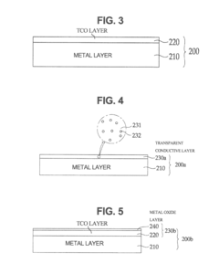 - Processing and Treatment Methods to Enhance TCO Performance: Various processing and post-treatment methods can significantly improve the performance of transparent conductive materials. These include annealing treatments, plasma processing, surface modifications, and doping optimization. Such treatments can enhance crystallinity, reduce defects, improve carrier mobility, and optimize the optical and electrical properties of TCOs and metallic conductors. Advanced deposition techniques such as atomic layer deposition, pulsed laser deposition, and solution-based methods also play crucial roles in controlling the microstructure and properties of transparent conductive materials for specific applications.